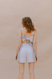 EL TOP SABANA de UNIÓN es parte de nuestra línea one of a kind, está hecho a base de lino en la parte delantera con escote y drapeado. En la parte de atrás es la unión de diferentes telas de lino que son reutilizadas de nuestro waste de otras colecciones que termina con un lazo ajustable en la espalda. Cómodo, atrevido y fácil de combinar con faldas, pantalones y shorts.